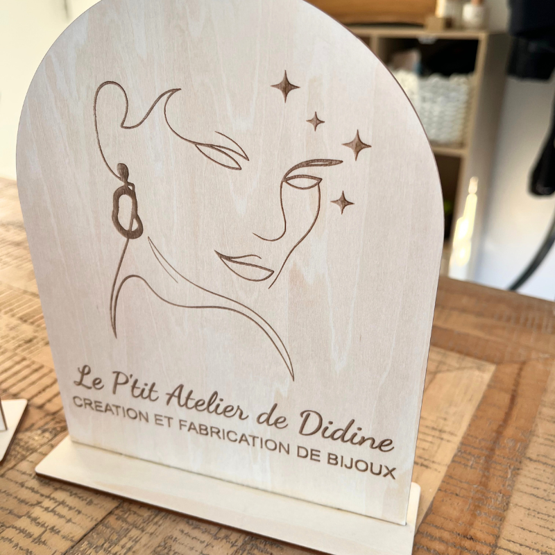 Apportez une touche naturelle et authentique à votre communication avec cette affiche en bois personnalisée avec pied intégré, entièrement réalisée sur mesure.