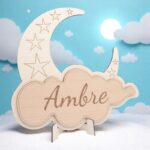 Prénom gravé sur bois, déco Lune – Cadeau de naissance
