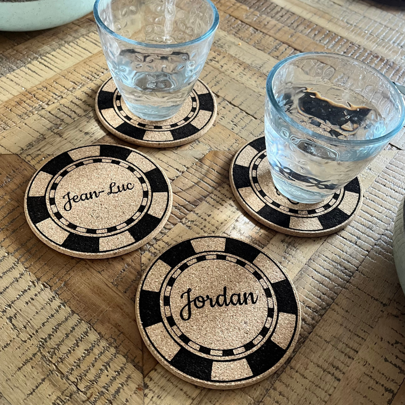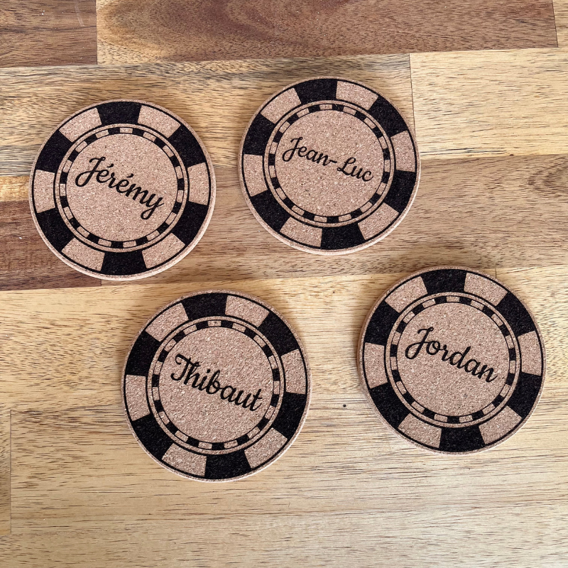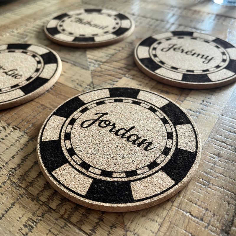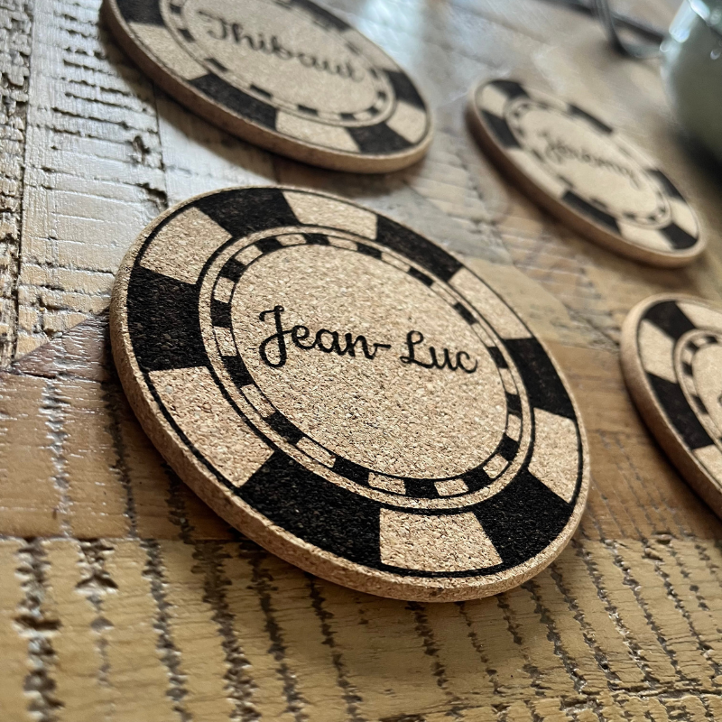 25 mars 2026Sous-verre en liège personnalisé poker – Jeton gravé – Cadeau original